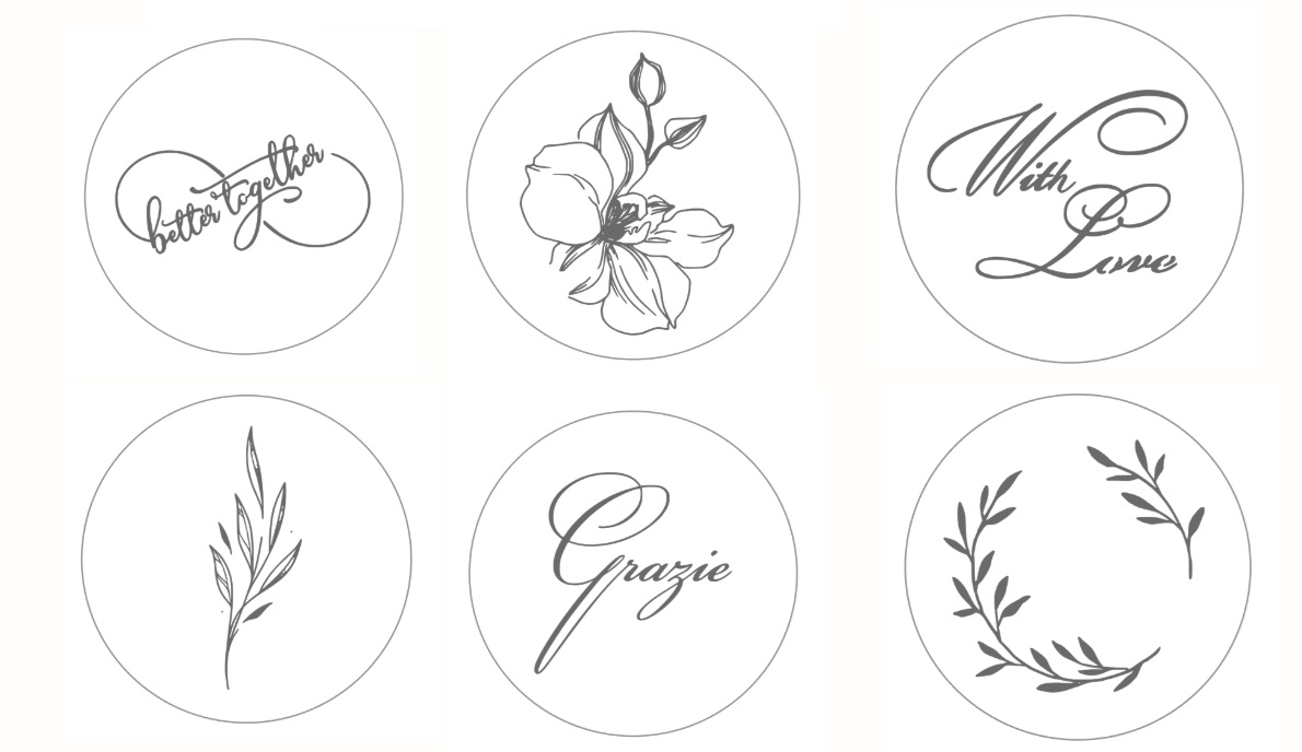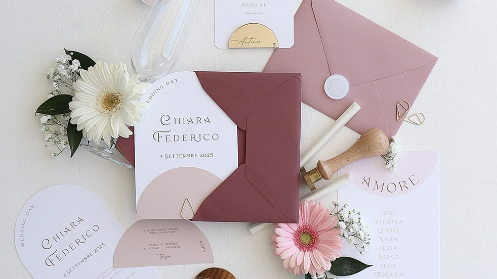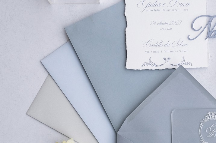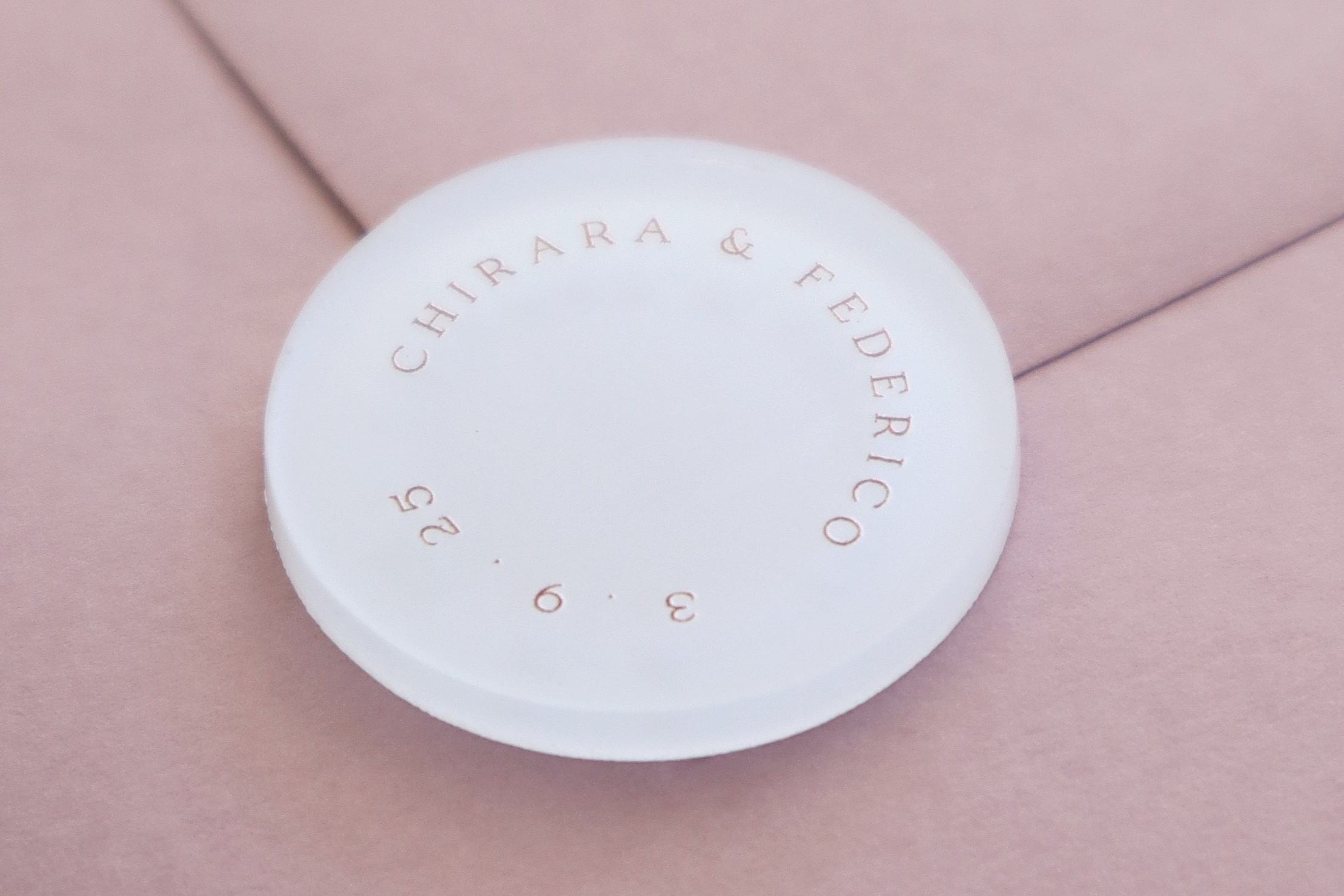 Per una partecipazione ancora più ricercata sono disponibili timbri in ottone con grafica personalizzata in coordinato alla stationery del vostro matrimonio.